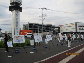 大会50日前となる令和7年9月26日(金曜日)、全国を巡回しているキャラバンカーが富士見市役所都市宣言塔前に到着し、セレモニーを行いました。手話を交えたあいさつのあと、ピンク色のキャラバンカーをバックに横断幕を掲げ記念撮影を行いました。また、会場には大会についての説明バナー、人気漫画家の原画パネルも一緒に展示していただきました。2025デフリンピック応援隊である富士見市マスコットキャラクターの「ふわっぴー」や、富士見市社会福祉協議会のマスコットキャラクター「うさみん」も登場し、セレモニーを盛り上げました。