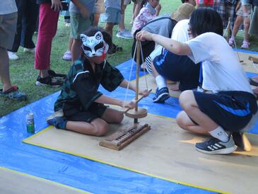 園内で、やりなげ・火おこし・まが玉づくりを体験してもらいました。