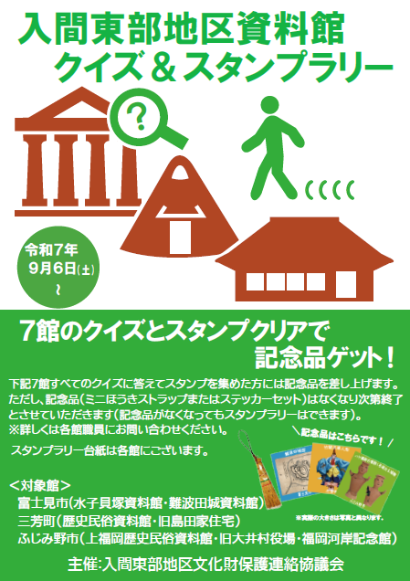 入間東部地区(富士見市・ふじみ野市・三芳町)の資料館・記念館でクイズ&スタンプラリーを実施します。