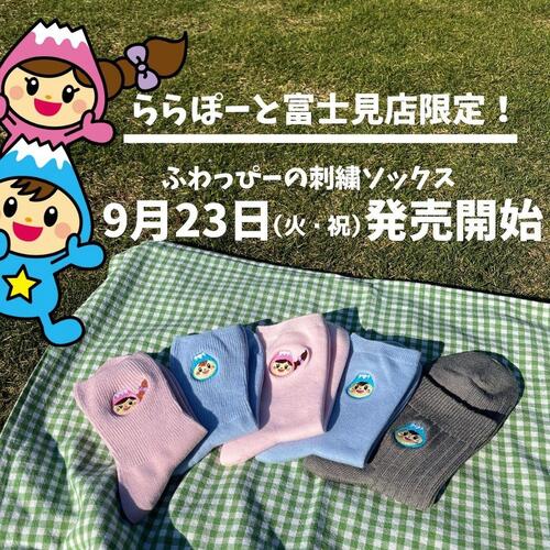 三井ショッピングパーク ららぽーと富士見が開業10周年を迎えることを記念して、靴下屋ららぽーと富士見店(タビオ株式会社)と市マスコットキャラクター「ふわっぴー」のコラボが実現しました。靴下屋ららぽーと富士見店では、ふわっぴーの顔をデザインした刺しゅうが入った靴下が9月23日(火曜日・祝日)より販売を開始します。